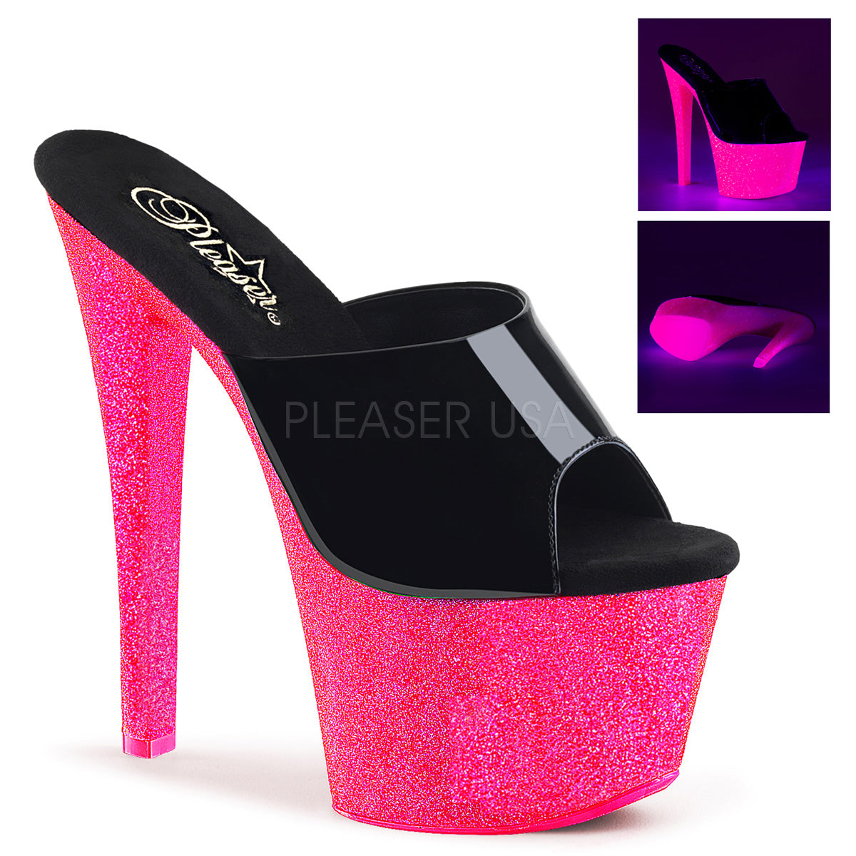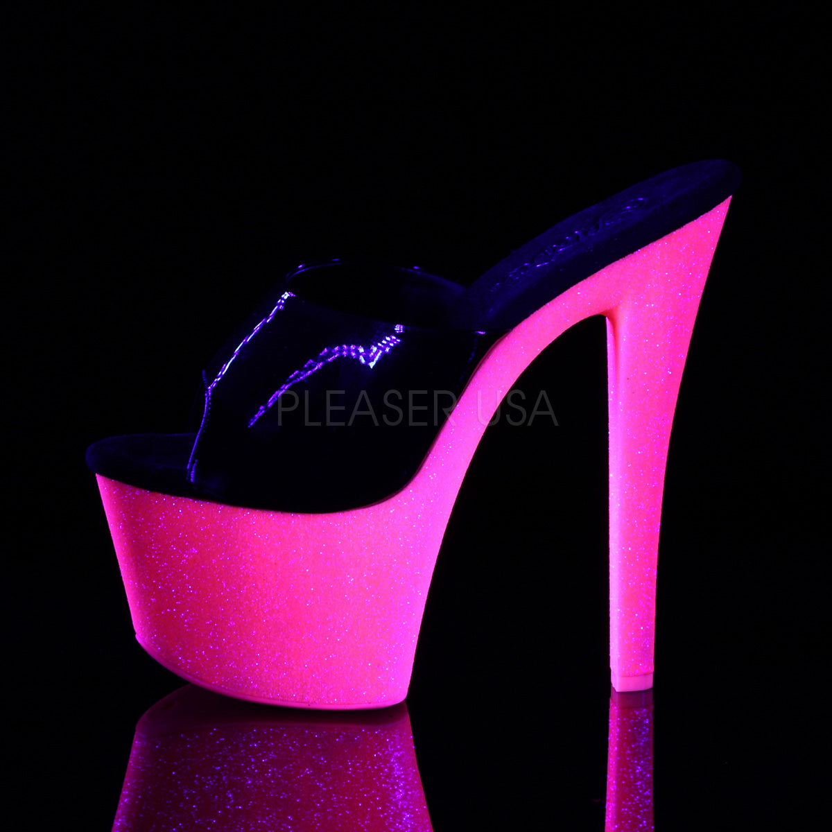 SKY-301UVG Black Patent/Neon Hot Pink Glitter