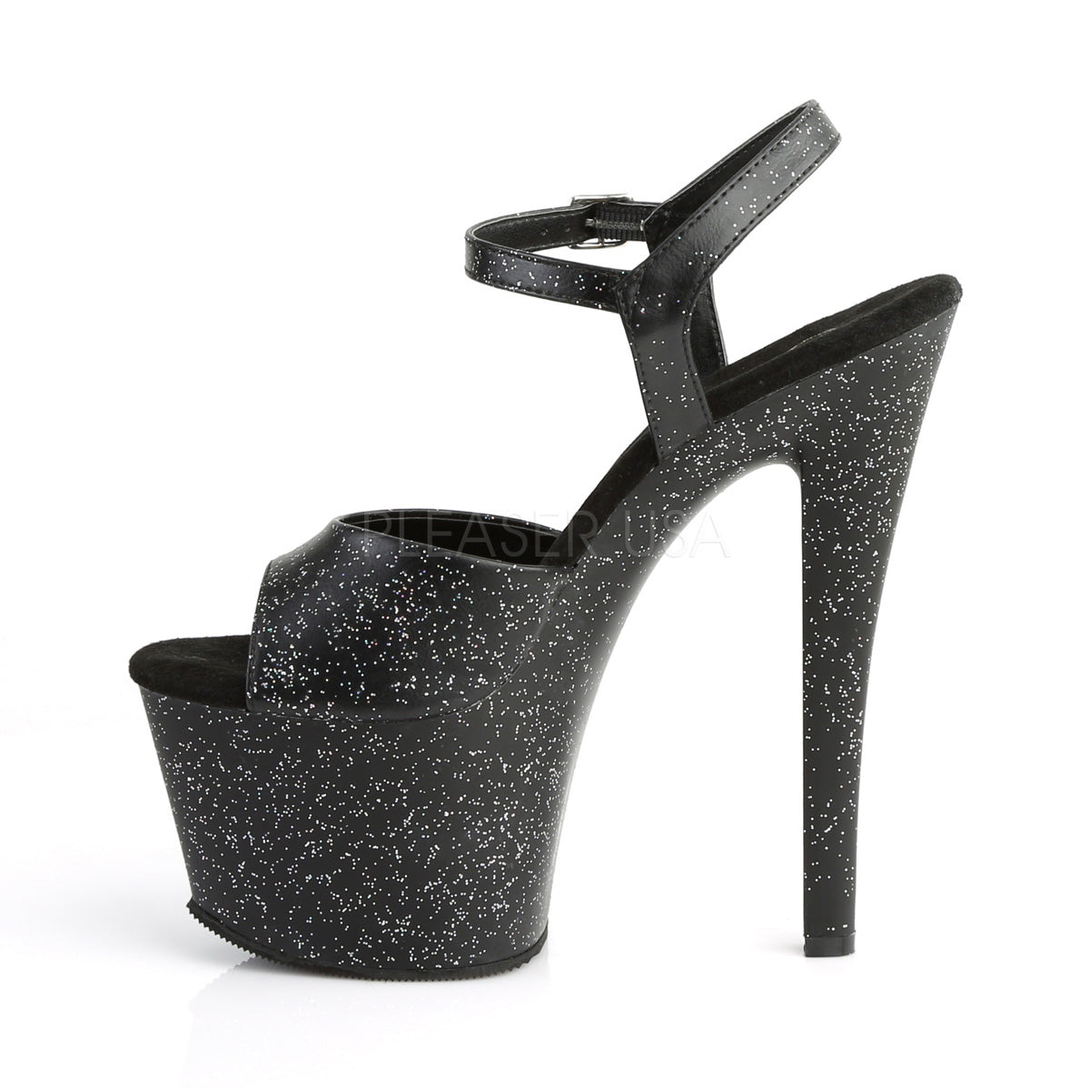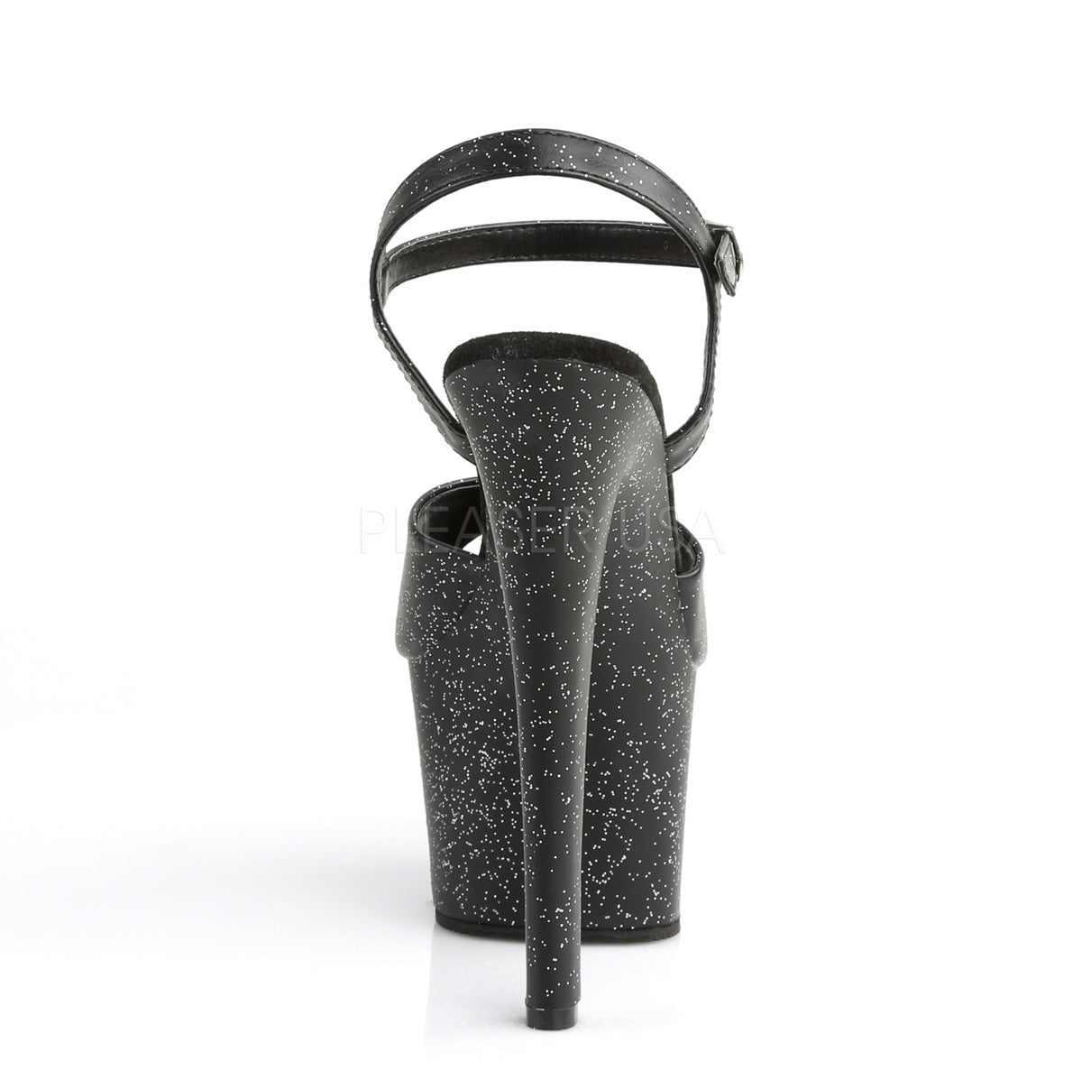 Full Description: 7" Heel, 2 3/4" PF Heel Ankle Strap Sandal w/Mini Glitter