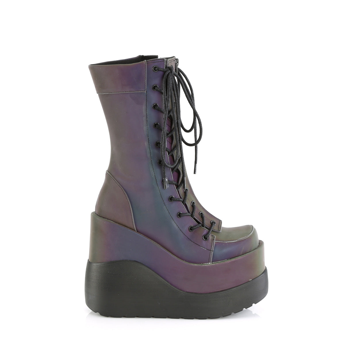 Full Description: 5" Wedge Tiered PF Outside Lace-Up Mid-Calf BT, Center Zip
